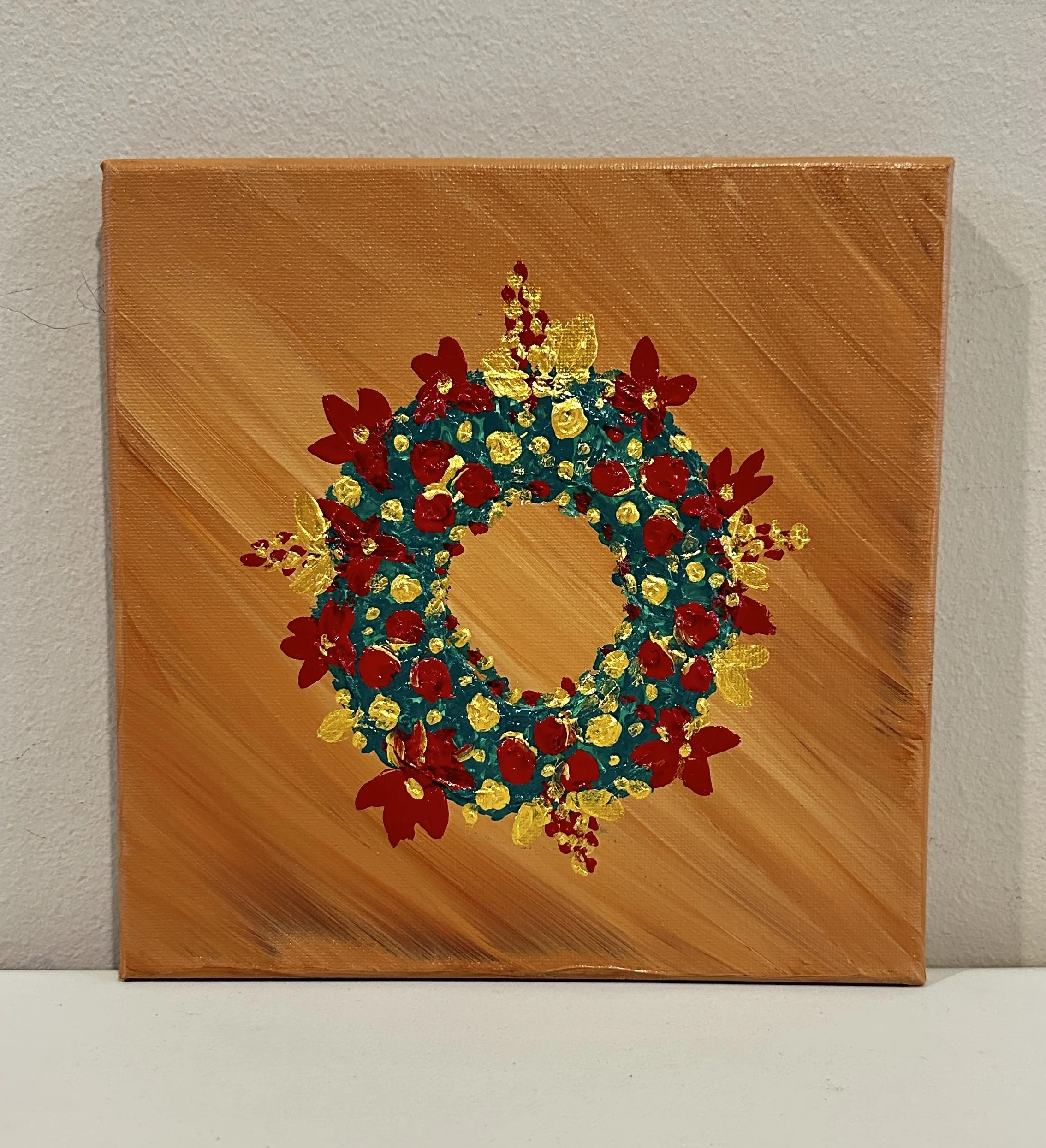 🌿Holiday spirit in full bloom! This 8x8 acrylic wreath painting with texture captures the timeless charm of winter greenery, wrapped in festive hues and gentle brushwork. A celebration of tradition, warmth, and the quiet beauty that hangs on every door this season. Perfect for gifting or adding a handmade touch to your holiday decor. 🎨✨ #WreathArt #HolidayPainting #AcrylicOnCanvas #SeasonalDecor #ArtistAtWork